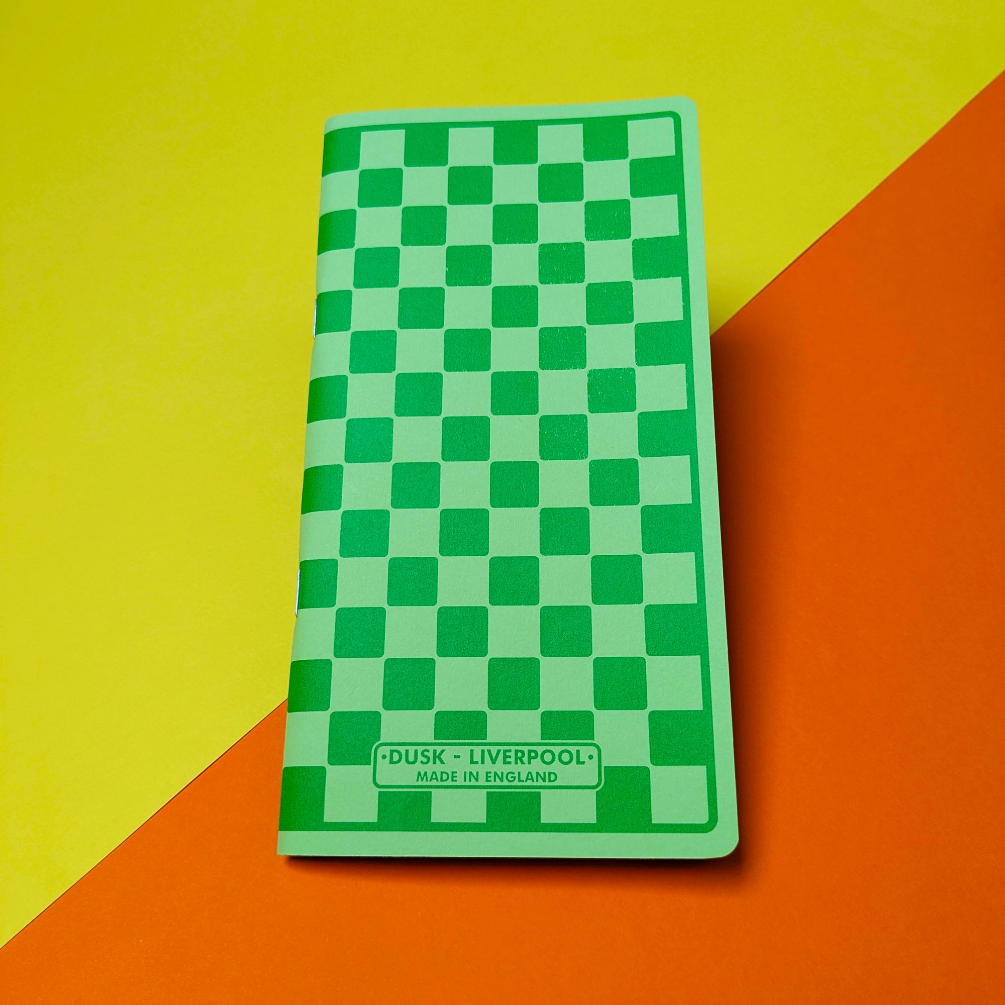 Green with green checks slim notebook.